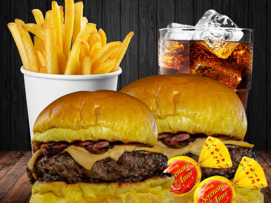 2 burguer: pão brioche, blend bovino, queijo prato, bacon com toque de limão, molho especial da casa2 Batatas fritas 1 refrigerante de 600ml 2 BombosCondições de venda: não enviamos mais sachês de ketchup e guardanapo no pedido, se desejar, tem a opção para pedir na aba de 'kit Asburguer'Seo: hamburguer / burguer/ sanduiche/ carne/ jantar